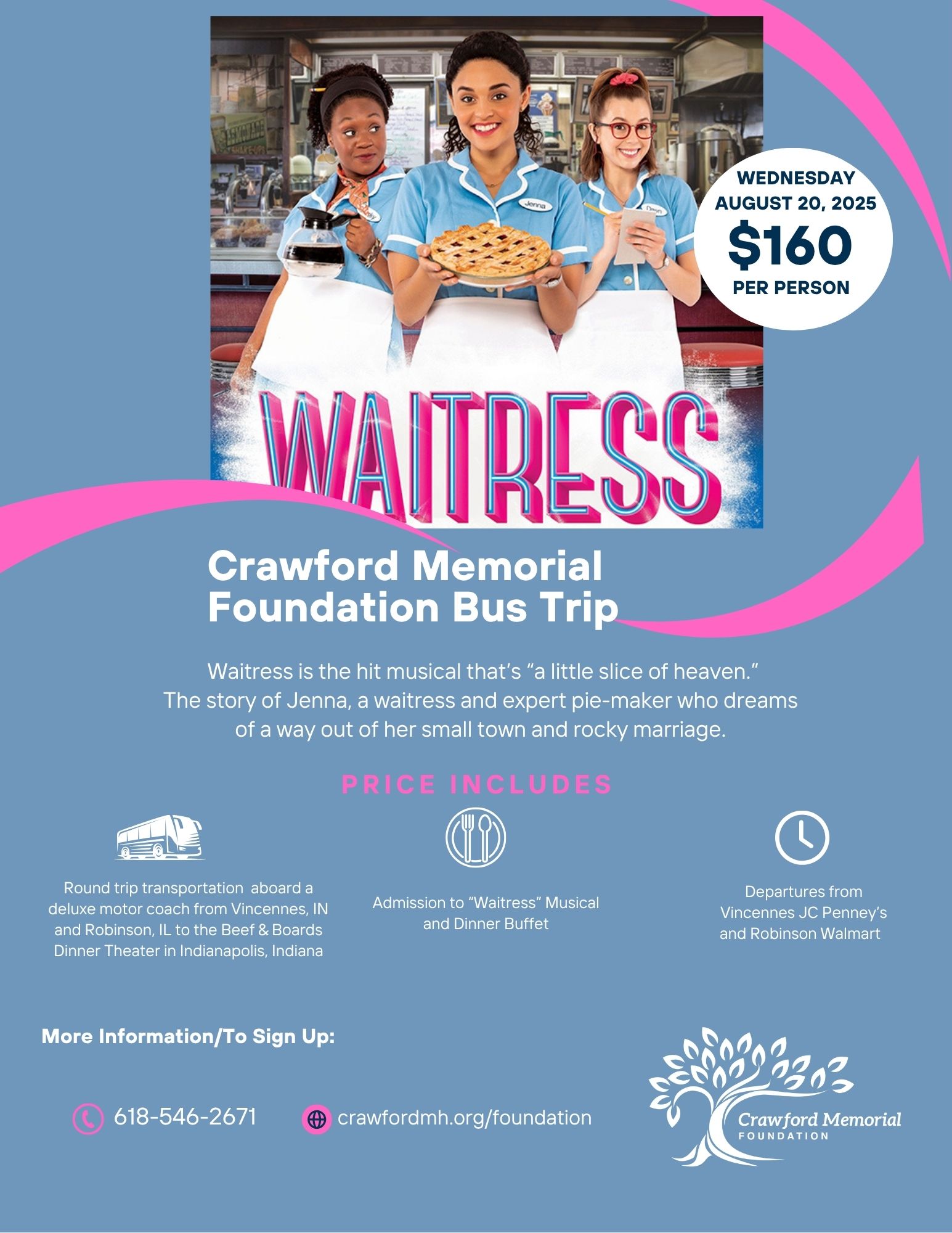 Join us at Beef & Boards Dinner Theater to enjoy a buffet lunch and the musical "Waitress".